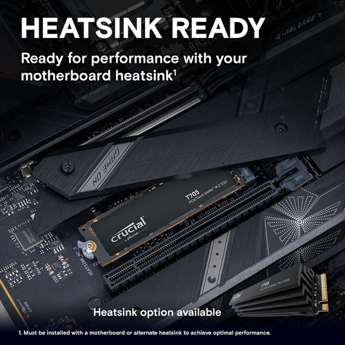 Preparado para ser utilizado com o dissipador de calor da sua motherboard, o T705 instala-se facilmente na ranhura M.2. A sua inovadora etiqueta revestida a cobre foi concebida para transferir eficazmente o calor da unidade para o dissipador de calor da motherboard, garantindo uma ampla dissipação de calor para um desempenho máximo. Também está disponível uma opção de dissipador de calor integrado.