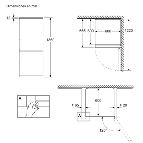 Dimensões do aparelho (altura x largura x profundidade sem alça): 186 x 60 x 66,5 cm