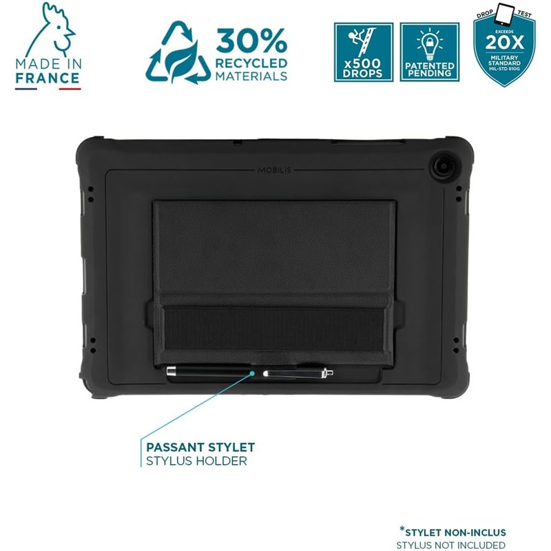 Descubra a capa protetora Mobilis PROTECH, projetada especificamente para usuários de tablets que desejam proteção e conforto. Esta capa é uma capa protetora durável que protege seu dispositivo contra quedas, choques e choques, pois atende aos padrões MIL-STD 810G e tem altura máxima de queda de 1,2 m.