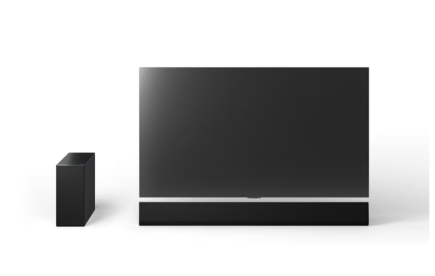 A barra de som reproduz o som adaptando-se ao espaço com sua calibração AI aprimorada. AI Room Calibration Pro seleciona automaticamente a melhor configuração de barra de som para cada sala, usando o microfone interno para analisar o espaço. Ao ajustar as frequências de referência para uma ampla faixa de 400 Hz, você pode analisar o espaço com precisão e corrigir a distorção do som.