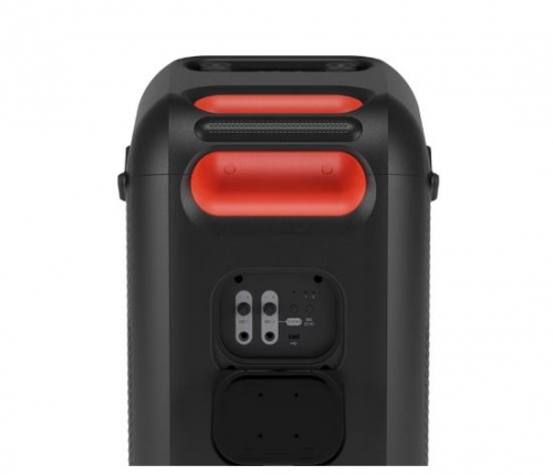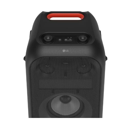 LG XBOOM XL9T possui um grande woofer de 8 polegadas. Ele reproduz graves potentes, proporcionando um som profundo e intenso que anima o público.