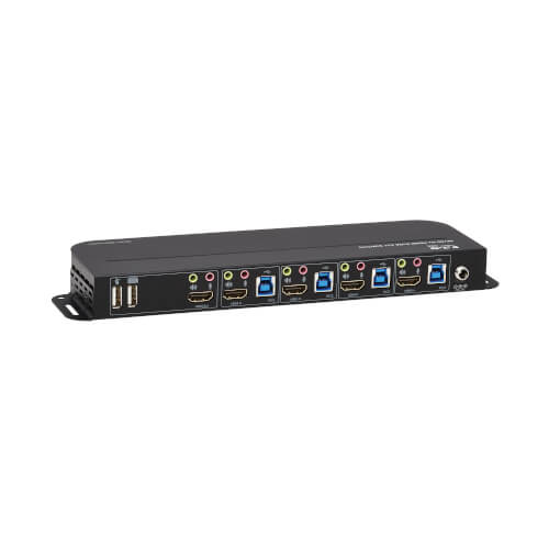Controla 4 computadores desktop ou notebooks habilitados para HDMI usando um monitor HDMI centralizado e teclado/mouse USB.
