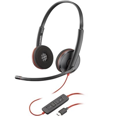 Auscultadores POLY Headset estéreo Poly Blackwire 3220 com USB-C + Adaptador USB-C/A (a granel) Preto