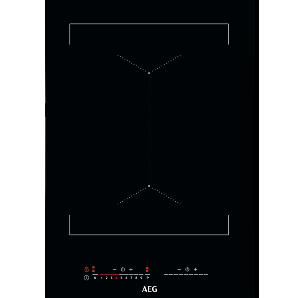 36 cm, 2 zonas com Ponte, Controlo slider (0-9 com Power) individuais com temporizador Eco individual, Deteta os recipientes, Bloqueio de segurança, Sem moldura