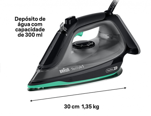 Capacidade Depósito Caldeira: 0,3 Lt > ferros de engomar6390NovoProduto disponívelFerro a Vapor BRAUN - SI5277GR