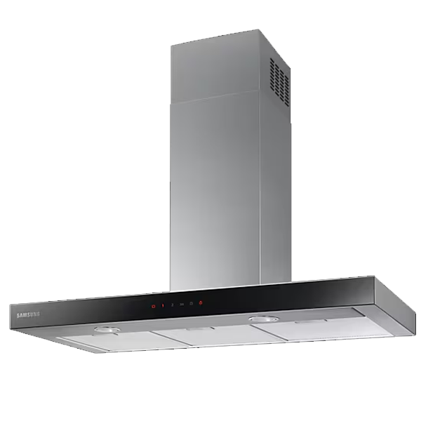 Samsung NK36C5070US UR. Potência máxima de extração: 531 m³ h, Tipo de extração: Conduzido recirculante, Nível de ruído: 70 dB. Tipo: Montado na parede, Cor do produto: Aço inoxidável, Tipo de controlo: Toque. Tipo de filtro de gordura: Alumínio. Tipo da lâmpada: LED. Classe de eficiência energética: B, Potência do motor: 265 W