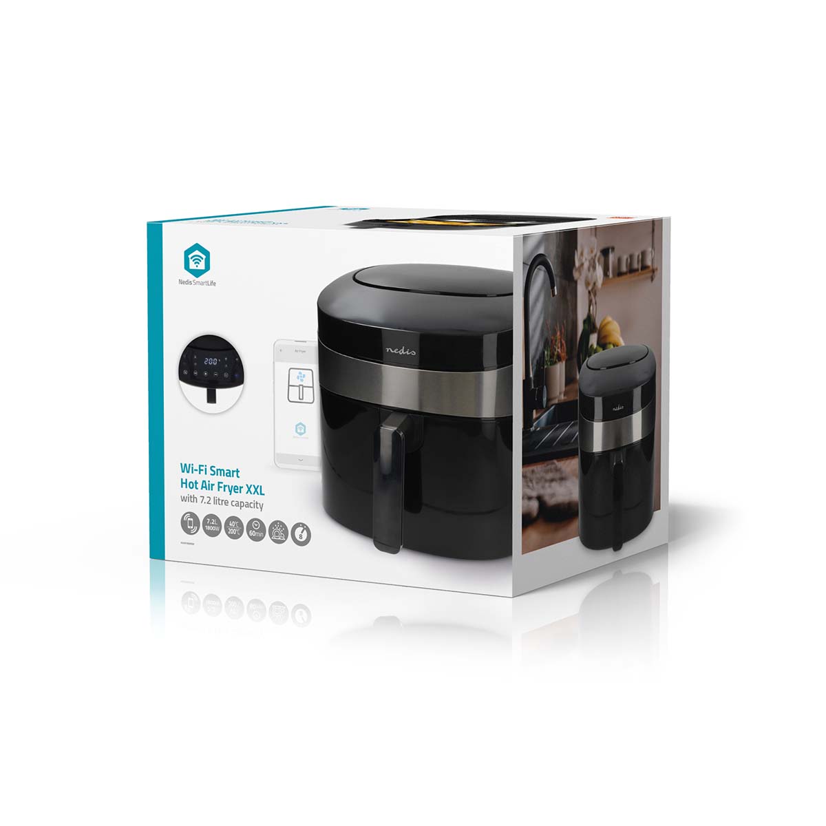 Controlado por aplicativo: opere, monitore e receba notificações da fritadeira de ar quente através do aplicativo gratuito Nedis® SmartLife