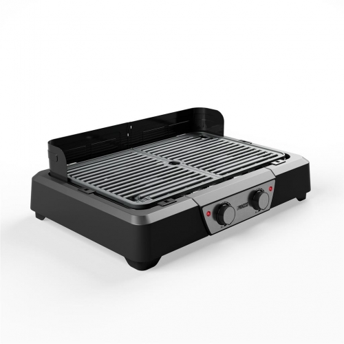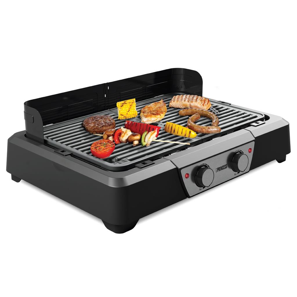 Este grelhador é perfeito tanto para grelhar como para churrasco tradicional. Equipado com um pára-brisa removível, este grelhador transita perfeitamente do uso de mesa para o modo tradicional de churrasco. A proteção contra o vento integrada garante que o vento não influencia o calor, para que também possa desfrutar de carne, peixe e vegetais acabados de grelhar num local com muito vento, como o parque de campismo ou a praia. A generosa superfície de cozimento de 43x27 cm oferece amplo espaço para cozinhar vários pratos ao mesmo tempo, enquanto o poderoso elemento de aquecimento de 2.000 watts garante que a churrasqueira elétrica Princess esteja pronta para começar a cozinhar em apenas alguns minutos.