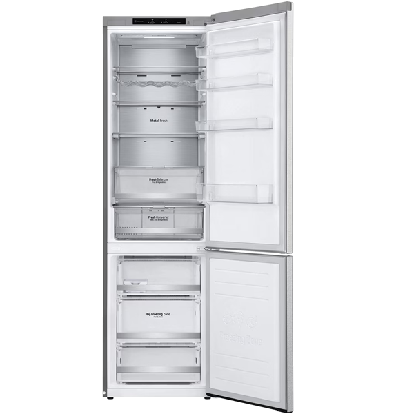 Com IVACombinado LG GBB92MBB3P, 384 litros, eficiência energética A-20%, 2,03 m, Door Cooling+™, Wi-Fi, inox