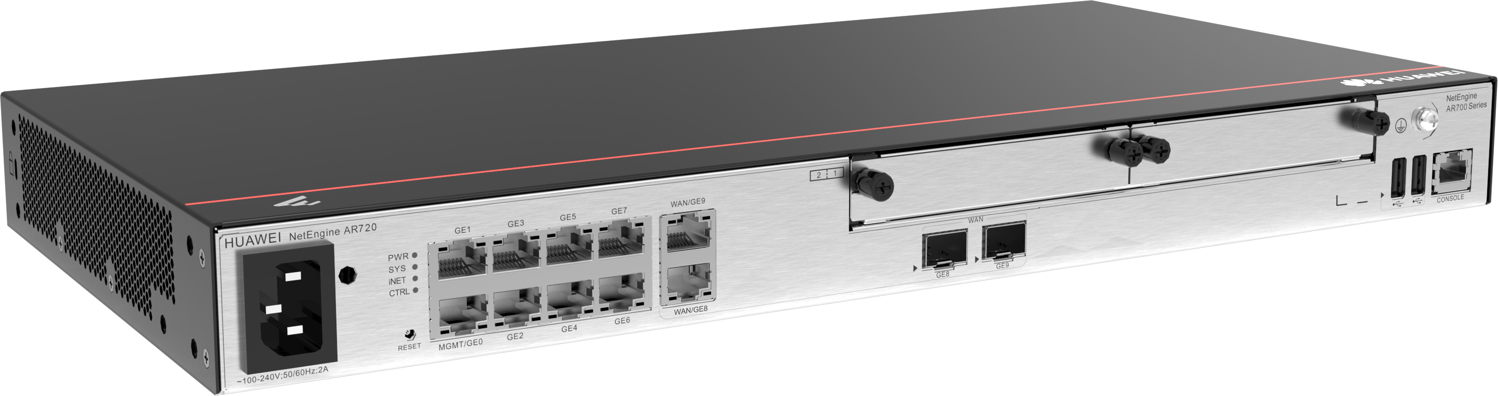 AR720, 2*GE combo WAN, 8*GE LAN, 2*USB 2.0, 2*SIC