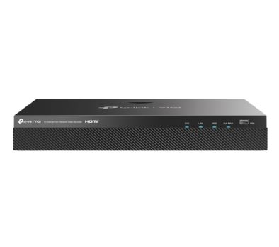 TP-Link VIGI VIGINVR2016H-16MP. Canais de entrada de vídeo: 16 canais, Resolução Máxima: 3840 x 2160 pixels, Modos de gravação de vídeo: 720p, 1080p, 2160p. Capacidade máxima de armazenamento: 10 TB, Interface do host: SATA. Taxa de transferência de dados Ethernet LAN: 10,100,1000 Mbit/s. Cor do produto: Preto. Consumo de energia (típico): 6,2 W, Potência por porta de alimentação por ethernet (PoE): 30 W