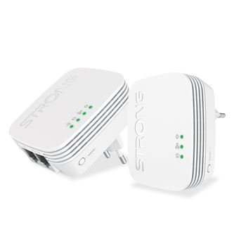 Strong POWERLWF600DUOMINI. Taxa máxima de transferência de dados: 600 Mbit s, Normas de Comunicações: IEEE 802.3, IEEE 802.3u, Tipo de interface de ethernet LAN: Gigabit Ethernet. Voltagem de entrada AC: 100 - 240 V, Frequência de entrada AC: 50 60 Hz. Cor do produto: Branco, Certificação: CE. Quantidade por conjunto: 2 unidade(s), Cabos: LAN (RJ-45), Tipo de embalagem: Caixa