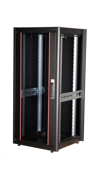 Com IVAGabinete de rede autônomo Equip Basic Flex 19", 26U, 600x600mm, com porta de vidro, painéis removíveis e com trava, montado, RAL9005 preto