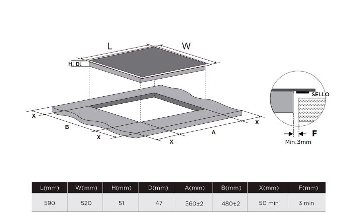 PLACA VITRO ARTICA AEV6024 4F 6000W 4 ZONAS
