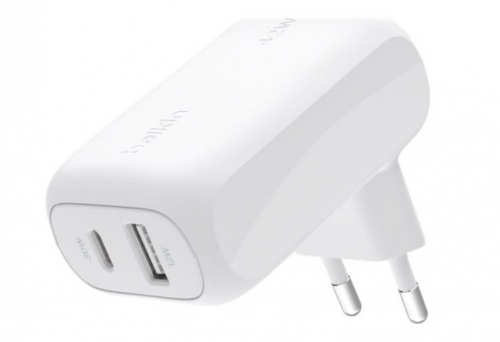Conteúdo Reciclado de Produto 72 % - fabricado com plástico reciclado pós-consumo > carregadores3590NovoProduto disponívelO carregador de parede duplo Belkin BoostCharge foi concebido para satisfazer as necessidades do utilizador móvel moderno. É compatível com telemóveis e tablets, oferecendo uma solução de alimentação versátil para os seus dispositivos. Com o seu design ecológico, fabricado com 72% de plástico reciclado pós-consumo, não só proporciona uma opção de carregamento fiável, como também contribui para a sustentabilidade ambiental. O carregador possui a avançada tecnologia Power Delivery 3.0 e uma fonte de alimentação programável (PPS), garantindo um carregamento eficiente. Pode carregar simultaneamente até dois dispositivos com os seus conectores de saída dupla, um USB-C de 24 pinos e um USB Type-A de 4 pinos, fornecendo um total de 42 W de potência. Isto garante que os seus dispositivos estão rapidamente prontos a serem utilizados, quer em casa quer em viagem. Além disso, o carregador está em conformidade com as normas REACH, RoHS e USB-IF, oferecendo tranquilidade com o seu compromisso com a segurança e a qualidade. Com um valor de proteção do equipamento de 2000 euros, oferece uma segurança acrescida para os seus valiosos dispositivos.