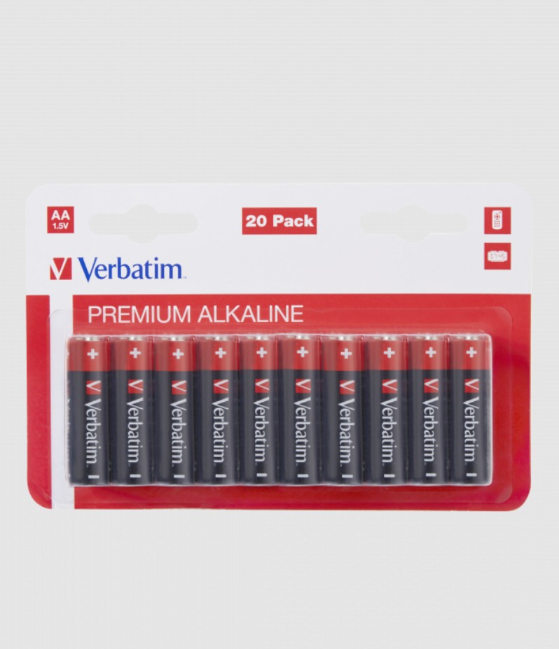 Pilhas alcalinas AA Pacote com 20 unidades VERBATIM
