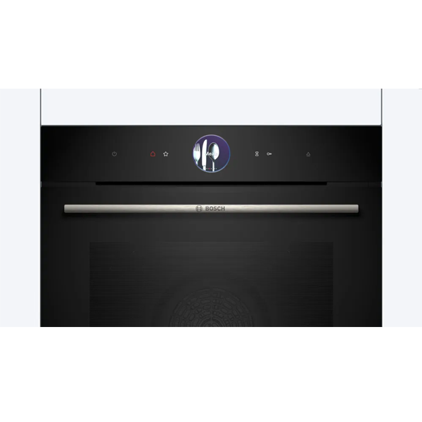 Bosch Serie 8 HRG7361B1. Tamanho do forno: Médio, Tipo de forno: Forno elétrico, Capacidade interior do(s) forno(s) totais: 71 l. Local de colocação: Embutido, Cor do produto: Preto, Tipo de controlo: Toque. Tipo de relógio: Electrónico. Classe de eficiência energética: A+, Consumo energético (convencional): 0,87 kWh, Consumo energético (convecção forçada): 0,69 kWh. Quantidade de lâmpadas: 1 lâmpada(s), Tipo de lâmpada: LED