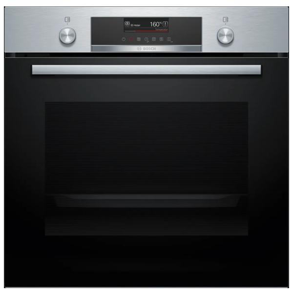 Bosch Serie 6 HBG579ES3. Tamanho do forno: Médio, Tipo de forno: Forno elétrico, Capacidade interior do(s) forno(s) totais: 71 l. Local de colocação: Embutido, Cor do produto: Preto, Aço inoxidável, Tipo de controlo: Rotativo, Toque. Classe de eficiência energética: A+, Consumo energético (convencional): 0,94 kWh, Consumo energético (convecção forçada): 0,69 kWh. Quantidade de lâmpadas: 1 lâmpada(s), Tipo de lâmpada: Halogénio. Comprimento do compartimento de instalação: 56,8 cm, Largura do compartimento de instalação: 55 cm, Altura do compartimento de instalação: 59,5 cm