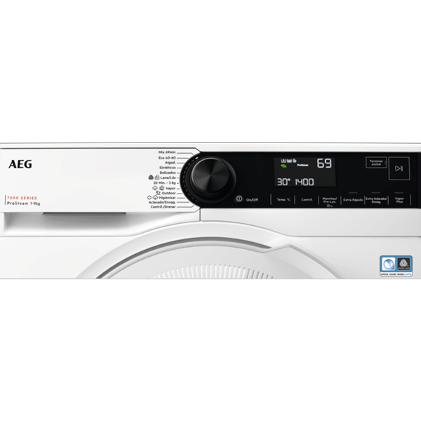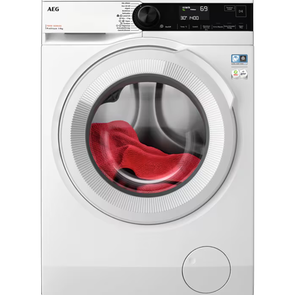 AEGMÁQUINA DE LAVAR ROUPA AEG - LFR7294O2BMÁQUINA DE LAVAR ROUPA AEG - LFR7294O2BCapacidade máxima em kg (UE 2017/1369): 9.0 | Volume do tambor: 69 | Altura, mm: 847 | Largura, mm: 597 | Profundidade, mm: 631 | Profundidade total, mm: 660 | Voltagem, V: 230 | Comprimento do cabo, (m): 1.62 | Ligação (W): 2100 | Classe de eficiência energética (Regulamento (UE) 2017/1369): A | Índice de eficiência energética (UE 2017/1369): 51.8 | O consumo de energia do programa eco em kWH por ciclo (UE 2017/1369): 0.493 | Consumo de água do programa eco em litros por ciclo (UE 2017/1369): 46 | Classe de eficiência de secagem por centrifugação do programa eco 40-60 (UE 2017/1369): B | Classe de emissão de ruído (UE 2017/1369): B | Emissão de ruído aéreo (UE 2017/1369): 75 | Frequência, Hz: 50 | Aqua Control | Lista de programas: MixLoad 69min, Eco 40-60, Algodões, Sintéticos, Delicados, Lãs, 20Min 3Kg, Vapor, Desporto, Hygiene, Enxaguamento, Centrifugação / Drenagem | Funções: Ligar/Desligar, Temperatura, Centrifugação, Pré lavagem / nódoas, Time Save, Enxaguamento extra, Vapor Plus, Termina em , Início/Pausa | Design: Display LCD XXL > lavar60790NovoProduto disponível