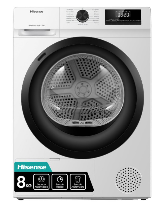 MAQUINA SECAR ROUPA HISENSE DHQE800BW2 BOMBA DE CALOR 8K CLASSE D