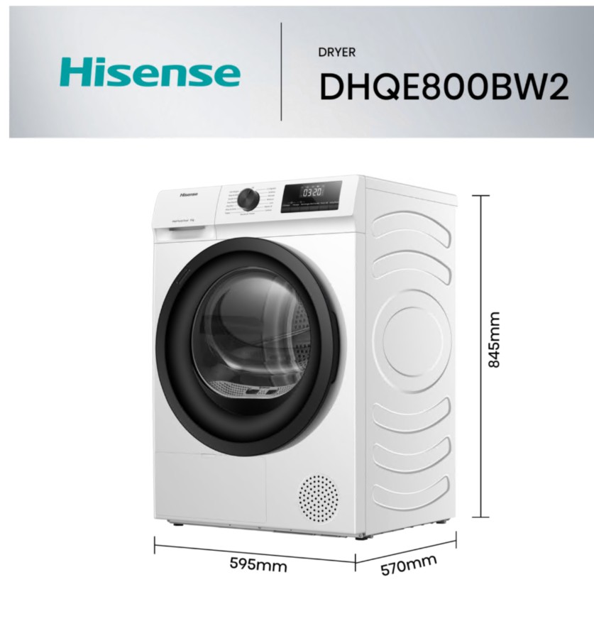 A Hisense DHQE800BW2 combina eficiência energética com tecnologia moderna para oferecer uma experiência de secagem prática e eficaz.