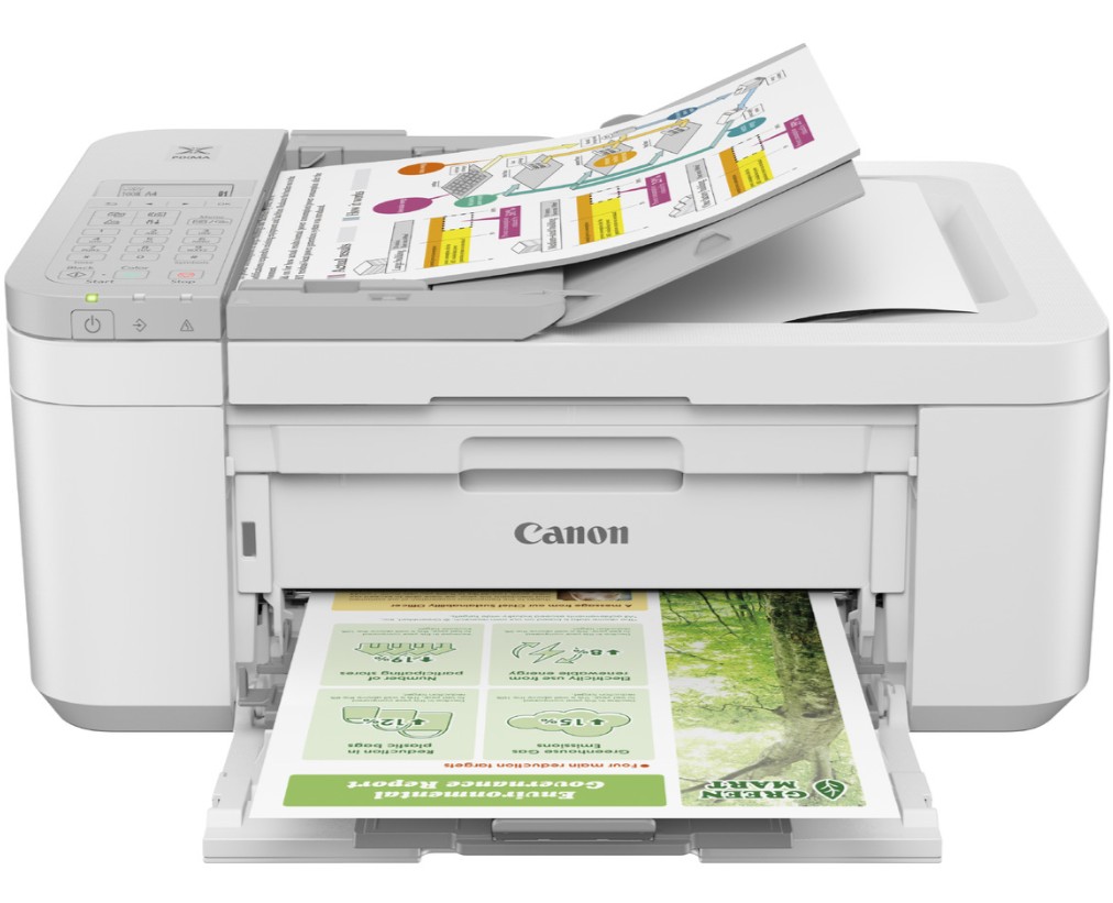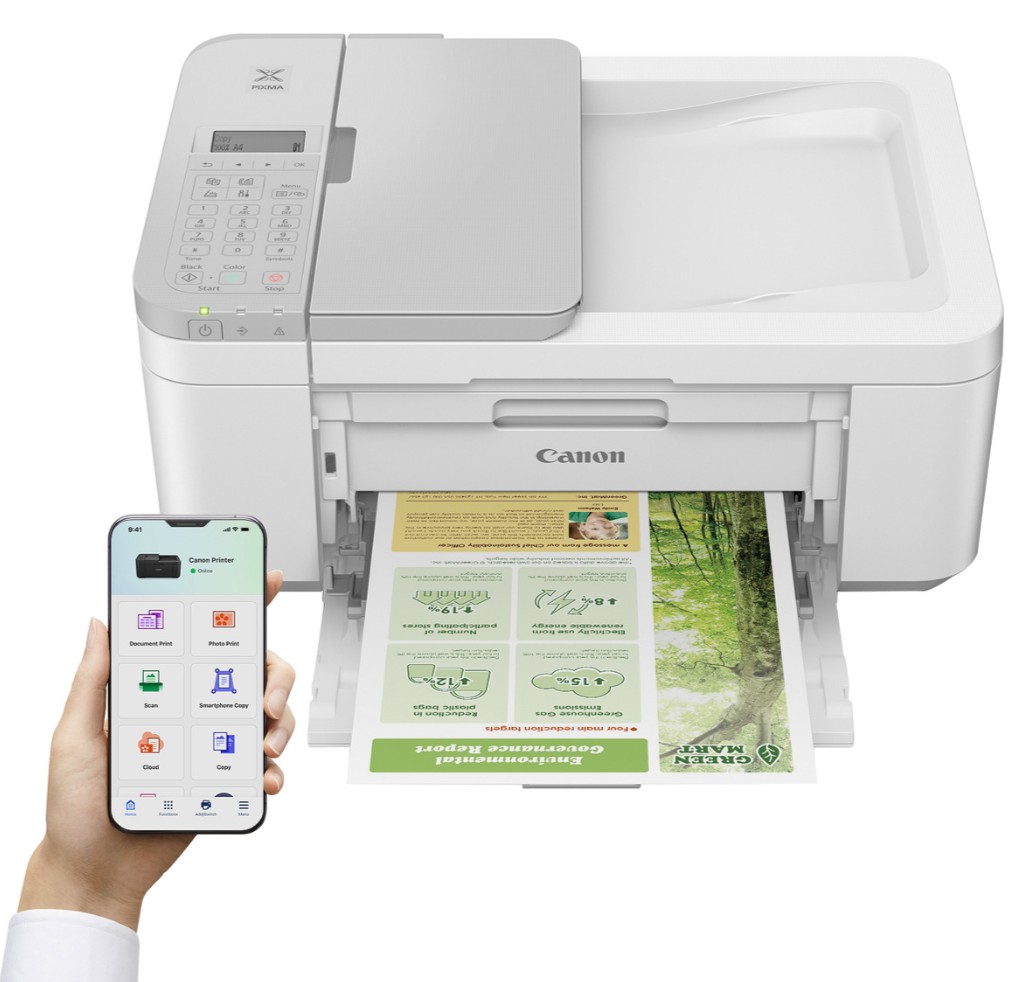 A Canon PIXMA TR4755i imprime, digitaliza, copia e envia faxes: ideal para escritórios em casa. Com o lembrete de remoção de documentos não se esquece de documentos sensíveis que copiou ou digitalizou.
