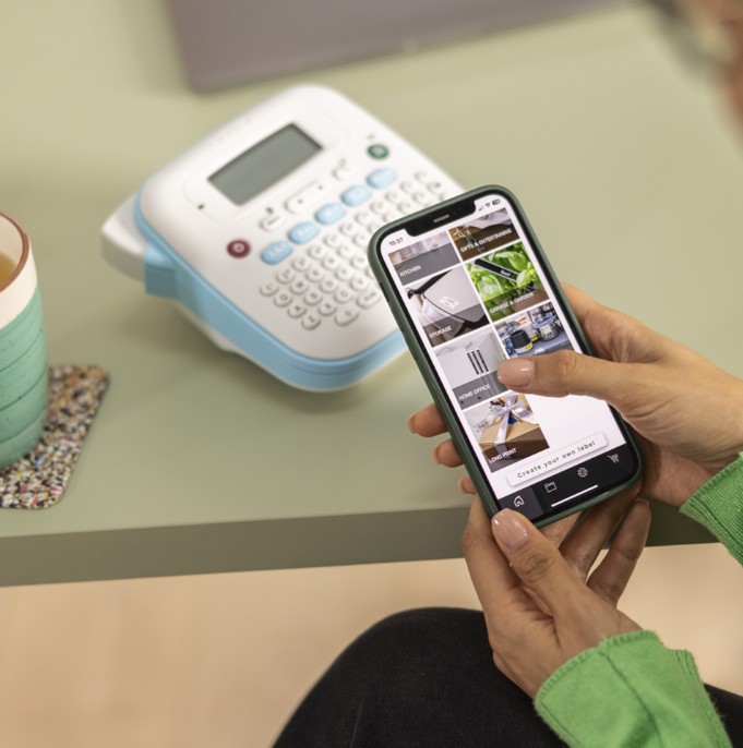 Etiquetadora de secretária com conexão ao seu smartphone. Imprime etiquetas para a organização do lar e escritório tanto em modo autónomo como a partir da nossa App gratuita.