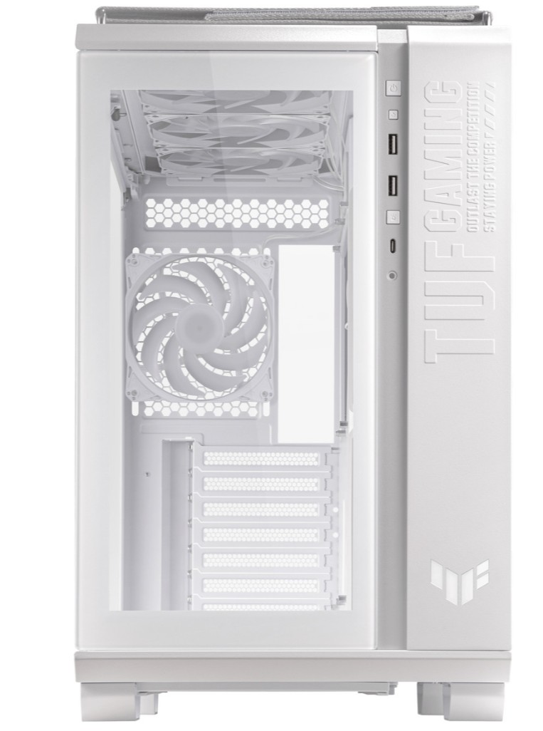 Para além de duas portas USB-A, o painel frontal da TUF Gaming GT502 PLUS inclui uma porta USB 3.2 Gen 2 Tipo C, preparada para velocidades de transferência até 10 Gbps.