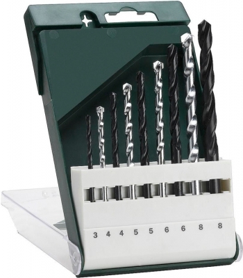 Número de brocas: 1, 9, Conjunto de brocas incluído: Broca de corte espiral, Broca rotativa, Tamanhos de conjunto de brocas: Twist 3.0x61 4.0x75 5.0x86 6.0x93 8.0x117 Spiral 4.0x75 5.0x85 6.0x100 8.0x120