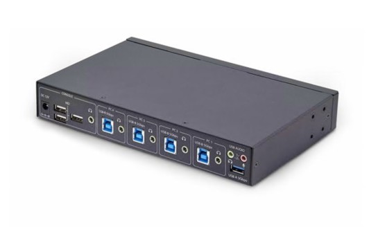 StarTech.com 4-Port KM Switch with Mouse Roaming, USB Switch for Keyboard/Mouse, 3.5mm and USB Audio, Peripheral Sharing for 4 Computers, USB 3.0 Switcher, TAA Compliant