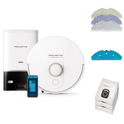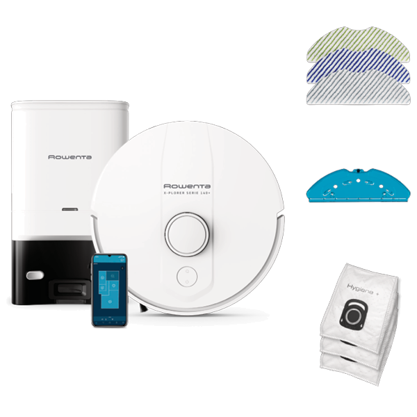 ROWENTAASPIRADOR ROBOT ROWENTA - RR9197WHASPIRADOR ROBOT ROWENTA - RR9197WHTipo: Aspirador Robot | Tecnologia: Escova rotativa central | Tipo de escova: Electro-brush | Escova lateral: 1 | Níveis de potência: 4 | Eficiência de aspiração: 6000 Pa | Função aspira e lava: Mopa incluida | Navegação multi divisões  | Desvio de obstáculos: Deteção de obstáculos > 5cm | Paredes virtuais: através da App | Tipo de navegação: Smart (câmara e laser) | Mapa permanente: Gestão da divisão e histórico | Capacidade de ir por baixo de mobiliário baixo  | Tipo de bateria: Iões de lítio | Autonomia: 120 min | Tempo de carregamento: 4h | Tipo de carregamento: Base de carregamento | Regresso à base automático | Conectividade: Wifi (app Rowenta e assistentes de voz) | Programação de limpeza  | Sistema de controlo: através da App | Capacidade do depósito de pó: 0,29 L | Base de esvaziamento automático | Número de sacos: Hygiene+ incluídos 3 | Capacidade do depósito de água: 0,32 L | Mopas: Cinza - todos os tipos de pisos, Azul - manchas difíceis, Verde - utilização sem água para partículas finas | Filtragem: Filtro de elevada eficiência | Nível de ruído: 70 dB(A) | Cor: Branco > aspiradores49590NovoProduto disponível