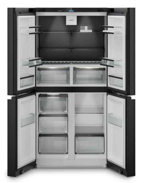 Este Liebherr impressiona com sua superfície de aço inoxidável preto – e com funções convenientes: suas portas abrem e fecham de forma especialmente suave e segura, e ele fornece cubos de gelo de forma confiável a qualquer momento.