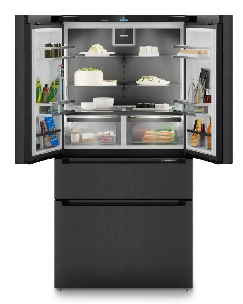 Este Liebherr impressiona com seu exclusivo acabamento BlackSteel. Graças à tecnologia patenteada, as portas abrem e fecham com facilidade, silêncio e segurança. E o InfinitySpring fornece água potável gelada o tempo todo.