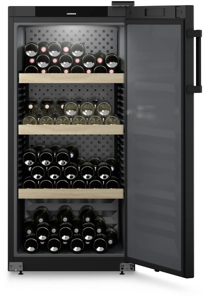 Seu vinho precisa de paz e tranquilidade. É por isso que nossos refrigeradores para armazenamento de vinhos garantem um armazenamento suave com compressores especialmente silenciosos, especialmente desenvolvidos pela Liebherr, e prateleiras estáveis de madeira maciça de faia. Isso permite que seu vinho amadureça em silêncio e sem perturbações.
