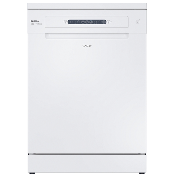 CANDYMaquina Lavar Loiça Candy CF 3C7L1W Classe CMaquina Lavar Loiça Candy CF 3C7L1W Classe CCapacidade (talheres): 13 | Níveis de lavagem (cestos): 3 | Classe de eficiência energética: C | Cor: Branco | | CARACTERÍSTICAS PRINCIPAIS     | Programador electrónico: de teclas por toque | Indicadores luminosos das fases do programa     | Início diferido: 3-6-9 h | Motor Inverter     | Conectividade App hOn: WIFI + Bluetooth | Sistema de secagem: por condensação | Cuba e interior da porta em aço inoxidável AISI 304     | Resistência oculta     | Níveis de desclacificação: 5 | | PROGRAMAS: 5 | Intensivo a 75ºc: 135 min | Universal 60ºC: 131 min | Eco 45ºC: 233 min / 236 min | Programa Rápido 49' a 60ºC: 49 min | Pré-lavagem: 10 min | | NÚMERO DE TEMPERATURAS: 3 | | CONFORTO DE UTILIZAÇÃO     | Porta auto compensada     | Triplo microfiltro autolimpante em aço inoxidável     | Cesto superior de grandes dimensões XL     | Cesto superior ajustável: CLICK CLACK | Cesto para cutelaria: 3º cesto | Cestos: Light grey | Botão meia carga     | Indicador luminoso de falta de sal     | | SEGURANÇAS | Dispositivo duplo anti-derrame | Sistema de segurança do cesto inferior  | | DESEMPENHOS     | Classe de eficiência energética: C | Classe de eficiência de ruído: C | Consumo de energia: 73 kWh/100 cliclos | Consumo de água: 9,5 L | Nível de ruído: 47 dBA | Capacidade: 13 Talheres | Duração do programa ECO: 3 h:55 m | | OUTROS DADOS     | Dimensões do produto AxLxP: 85x59,7x59,8 cm > lavar loiça - 60cm38690NovoProduto disponível