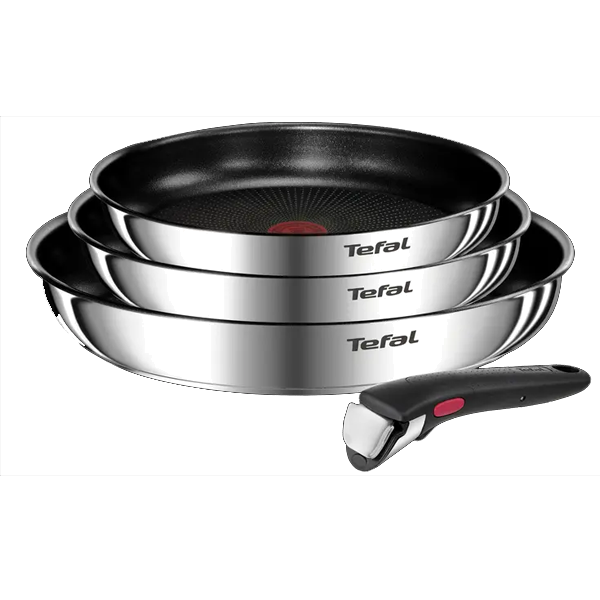 TEFALCONJ. 4 PEÇAS TEFAL INGENIO EMOTION - L8974S45CONJ. 4 PEÇAS TEFAL INGENIO EMOTION - L8974S45Set 4 peças (Frigideira 22/26/28cm + Pega amovível) | Material: Aço inoxidável | Fonte de calor: Indução – gás – elétrica – cerâmica - halogéneo | Compatível com forno: (excepto pega) | Thermo-Signal (indicador de temperatura) | Revestimento interior: Revestimento antiaderente | Nome do revestimento: Titanium X2 | Revestimento exterior/acabamento: Aço inoxidável | Tipo de base Tecnologia: Indução Integral | Tipo de pega: Amovível | Material da pega: Baquelite > frigideiras/grelhadores7790NovoProduto disponível