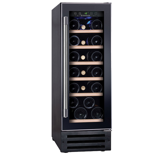 Classe de eficiência energética: B | Volume útil: 58 l | Capacidade total para garrafas: 19 | Cor: Inox/Preto | CARACTERÍSTICAS ESTRUTURAIS E FUNCIONAIS | Volume útil: 58 l | Capacidade total para garrafas: 19 | Descongelação Automática: filtro de carvão vegetal | Zonas de temperatura distintas: Mono Zona | DESIGN EXTERNO | Cor / material da porta: Vidro anti UV com moldura em Inox | Cor da cabine: Preto | Pega Externa em aluminio | CONFORTO DE UTILIZAÇÃO | Comandos electrónicos com display LCD | EQUIPAMENTO | Indicador Luminoso On/Off | Nº de prateleiras: 6 | Prateleira inferior amovível | Nº de portas: 1 | Prateleiras em madeira | Luz Interna: LED (0,25W) | DESEMPENHOS | Classe de eficiência energética: B | Consumo de energia: 0,464 kWh | Consumo de energia anual: 169 kWh | Nível de ruído: 39 dBA | Classe climatérica: N (16ºC-32ºC) | Gás refrigerante: R600a | Temperatura atingida no interior: 5º-22º C | Temperatura ambiente Min/Máx: 38ºC | OUTROS DADOS | Nº de pés ajustáveis: (813-883 mm) | Portas reversíveis | Dimensões do produto AxLxP: 875x295x570 mm | Dimensões necessárias para o encastre: 813x305x570 mm | Peso do produto 29 Kg > garrafeira / cave de vinhos44490NovoProduto disponível€ 444.90