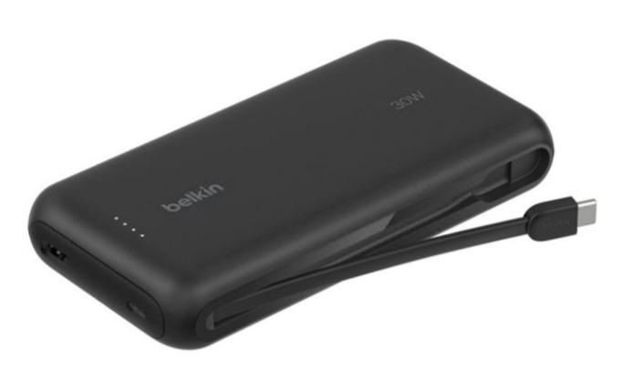 Descrição do produto Belkin BoostCharge carregador portátil - com cabo integrado - 2 x USB-C, USB - 30 Watt