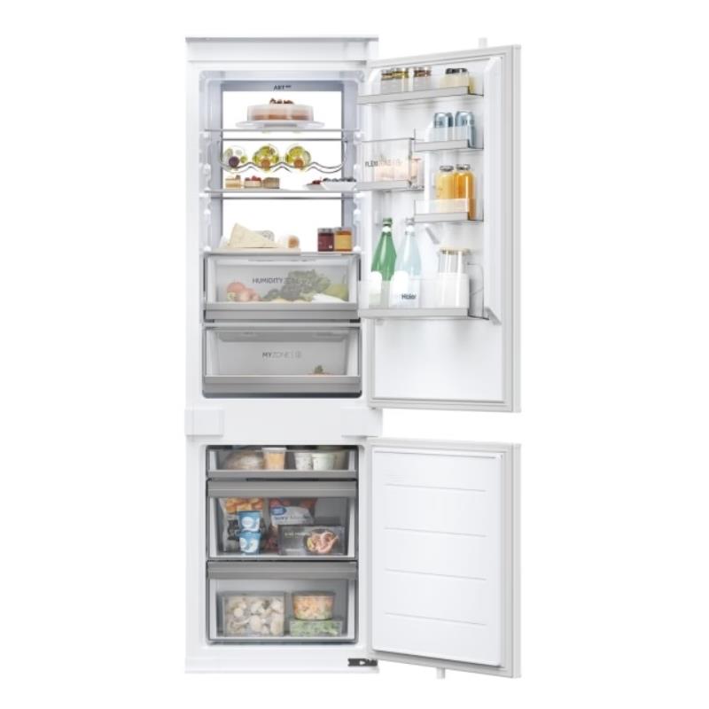 HAIERCOMBINADO HAIER - HBW7518BTCOMBINADO HAIER - HBW7518BTInstalação: Encastrável | Categoria de Produto: Frigorífico | Número de portas: 2 portas | Tecnologia de frio: No Frost | Painel | | CARACTERÍSTICAS TÉCNICAS | Conectividade: Controlo remoto avançado e conteúdos (Wi-Fi + BLE) | App IoT: hOn | My Zone | Humidity Zone | ABT | Day Light | Processo de descongelação da seção do congelador: Automática no frost | Processo de descongelação da seção do frigorífico: Automática | Junta de borracha: Empurrar | Luz: Led | Corrente (A): 1.3 | Frequência (Hz): 50 | Voltagem (V): 220-240 | | VISOR | Localização dos comandos: Painel de comandos no exterior | Interface de comando: Eletrónico | Indicador de porta aberta - frigorífico: Sonoro | Férias | Bloqueio | Função super refrigeração | Congelação rápida | Temperatura ajustável: Frigorífico | | ESTÉTICA | Cor do corpo: Branco | Prateleiras da porta: Em relevo | Material das prateleiras da porta: Plástico transparente | Material das prateleiras: Vidro | Prateleiras para garrafas | Tipo de dobradiça: Montagem deslizante | Dobradiça da porta: Montada à direita | Número total de prateleiras da porta: 5 | Número de gavetas: 1 | Número de gavetas de congelação: 3 | Número de suportes para os ovos: 1 transparente | Número de cuvetes para gelo: 1 transparente | Número de prateleiras ajustáveis no compartimento do frigorífico: 2 | | DESEMPENHOS E CONSUMOS | SN | N | ST | T | Autonomia em caso de falha de energia (h): 12 | Classe Energética: B | Consumo anual de energia (kWh): 120 | Classe de ruído: B | Nível de ruído (dBA): 32 | Classificação por estrelas: 4 | Capacidade total de congelação: 8 | Capacidade total do compartimento de refrigeração (l): 182 | Capacidade total do compartimento de congelação (l): 86 | Capacidade total (l): 268 | | DIMENSÕES | Altura (mm): 1772 | Largura (mm): 540 | Profundidade (mm): 550 > combinado136790NovoProduto Limitado
