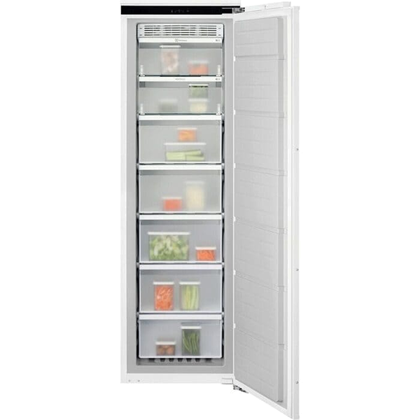 ELECTROLUXArca Vertical ELECTROLUX EUN7NE18C Total No Frost Classe EArca Vertical ELECTROLUX EUN7NE18C Total No Frost Classe EPara que nunca mais tenha de descongelar A tecnologia No Frost evita a acumulação de gelo no congelador, para que nunca mais tenha de o descongelar. Torna o congelador mais higiénico e fácil de limpar e proporciona-lhe mais espaço para guardar os seus alimentos preferidos. Um agente de mudança – congelador único com plástico reciclado Temos o orgulho de apresentar o nosso congelador único com um revestimento interior feito com 70% de plástico reciclado. A utilização de plástico de aparelhos de frio descartados para produzir novos frigoríficos, contribui para a redução de resíduos através da circularidade. O revestimento interno rHIPS é feito com até 70% de plástico reciclado, representando 13% do plástico total do frigorífico. Alarme de Porta com Som O alarme da porta ajuda a evitar o desperdício de alimentos e de energia, e envia um alerta caso a porta do eletrodoméstico fique aberta durante demasiado tempo. Mantenha a textura perfeita com a função Extra Freeze O sistema Extra Freeze congela rapidamente os alimentos frescos, preservando melhor as vitaminas, a textura, o sabor e todas as suas propriedades nutritivas. Porta de fecho suave, bastante, suave Desfrute de dobradiças de porta especialmente concebidas que ajudam a evitar uma porta de congelador aberta acidentalmente que pode levar ao desperdício de energia e alimentos estragados, garantindo uma experiência confortável, segura e silenciosa ao fechar a porta. Especificações Cor Branco Classe de eficiência energética (Regulamento (UE) 2017/1369) E Volume total (UE 2017/1369) 212 Capacidade de congelação (secção de 4 estrelas) (UE2017/1369) 17.5 Classe climática (UE) 2017/1369 SN-N-ST Consumo ponderado de energia em kiloWatts hora por ano (kWh/a) (EU) 2017/1369 236 Classe de emissão de ruído aéreo (UE 2017/1369) B Emissão de ruído aéreo (UE 2017/1369) 35 Dimensões (AxLxP), em mm 1769x557x549 Porta reversível Sim Tecnologia de frio do congelador No Frost Lâmpadas do congelador Nenhuma Tipo de porta 1 Condensador Estático Volume do compartimento (4 estrelas) (UE2017/1369) 212.4 Soma do volume dos compartimentos de congelação (UE 2017/1369) 212 Iluminação LED Não Segurança para crianças Sim Descongelação Automática Sim Abertura Pedal - QuickDoor - Porta sobre porta Sim Porta deslizante Não Tipo de controlo Controlo eletrónico tátil Tipo de função controlo de congelamento rápido Pressionar Autonomia sem corrente (h) 10 Temperatura ambiente máx ºC 38 Temperatura ambiente mín ºC 10 Prateleiras do congelador 6|Largura total|Vidro Tipo de gavetas do congelador Plástico Abas 2 Descongelação necessária Não Altura, mm 1769 Largura, mm 557 Profundidade, mm 549 Altura encastre, mm 1780 Largura encastre, mm 560 Profundidade encastre, mm 550 Voltagem, V 220-240 Frequência, Hz 50 Ligação (W) 140 Comprimento do cabo, (m) 2.4 > arcas90490NovoProduto disponível
