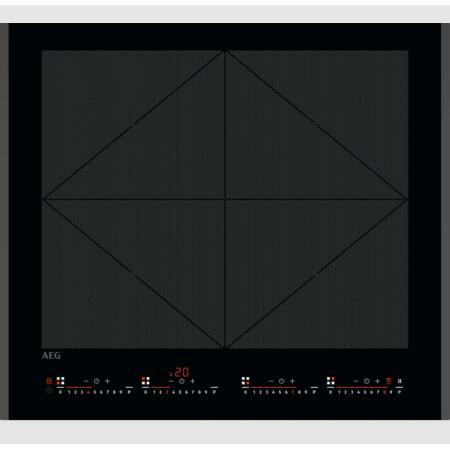 Funções: Indicador de calor residual em três passos, Alarme acústico, Função PowerBoost, Segurança de crianças, Temporizador, Temporizador Eco, Controlo flexível, Função Hob2Hood, Temporizadores individuais, Bloqueio de painel, Aviso por minutos, Função Pausa, Detetor de recipiente, Desativar som, TotalFlex