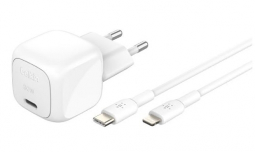 Descrição do produto Belkin BoostCharge adaptador de alimentação - compacto - USB-C - 30 Watt - com cabo USB-C para Lightning (1m)