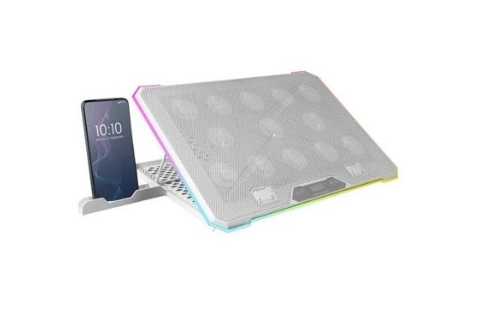 MARS GAMING MNBC13 ARGB NOTEBOOK COOLER & STAND 13x FANS LCD CONTROL SCREEN PHONE HOLDER UP TO 17INCH WHITE