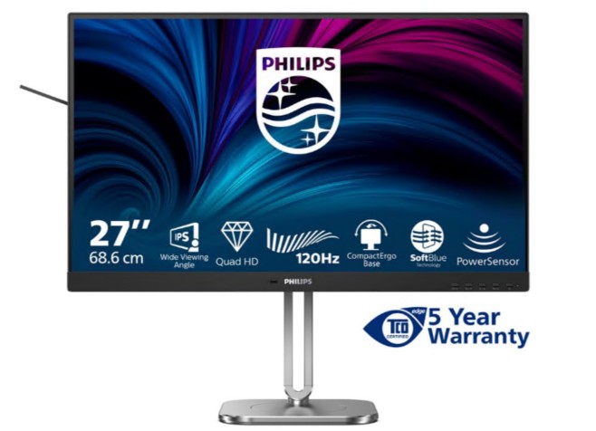 O Philips 27B2N4500 é um monitor de secretária de 27 polegadas concebido para melhorar a sua experiência de visualização. Com uma resolução nativa de 2560 x 1440 e uma densidade de pixels de 109 PPI, este ecrã proporciona imagens nítidas e vibrantes. Com uma taxa V-Sync de 120 Hz e um tempo de resposta rápido de 4 ms, garante um desempenho suave para trabalho ou entretenimento. O revestimento antirreflexo do ecrã e os ângulos de visão amplos de 178 graus facilitam a visualização a partir de diferentes posições sem comprometer a nitidez.