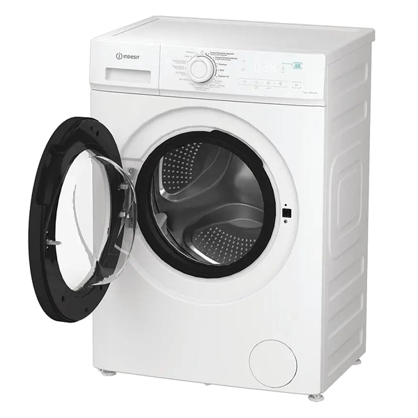 Com IVAEsta máquina de lavar roupa de carga frontal de livre instalação Indesit tem: uma espaçosa capacidade de 7,0 kg. Classe energética A. Uma velocidade de rotação de 1200 rotações por minuto, rápida e efciente em recursos. Cor branca.