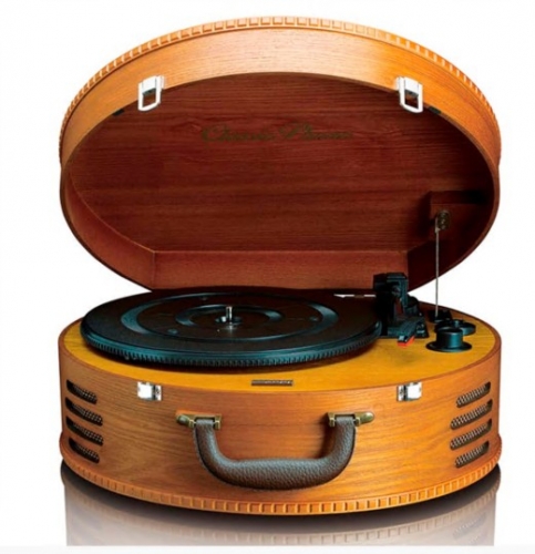 Dimensões Embalagem: 43.5 X 48.5 X 24 cm > gira discos18990NovoProduto disponívelO Classic Phono TT-34 é um magnífico e elegante gira-discos com um verdadeiro visual retro. Como o gira-discos está protegido por um estojo redondo, elegante e prático, feito de madeira, pode levá-lo para onde quer que vá. Assim, terá sempre o TT-34 e as suas músicas favoritas à mão, onde quer que esteja. O gira-discos é uma unidade fácil de utilizar, sem qualquer enfeite desnecessário. Graças aos altifalantes integrados, pode desfrutar de som de alta qualidade enquanto reproduz as suas músicas favoritas. Leve o estojo consigo para uma festa de aniversário ou reunião e surpreenda todos com um extenso repertório de êxitos antigos e novos. Torne a festa verdadeiramente inesquecível contactando os seus amigos e familiares com antecedência e pedindo-lhes que tragam também os seus discos favoritos. Ligue o gira-discos ao seu PC através da porta USB e converta a sua coleção de vinil em ficheiros MP3 digitais. O Classic Phono TT-34 possui um cartucho estéreo de cerâmica com agulha integrada. Pode reproduzir os seus discos a 3 velocidades diferentes: 33 RPM, 45 RPM e 78 RPM. O gira-discos está equipado com transmissão por correia e 2 altifalantes incorporados. Características importantes Gira-discos de madeira com ligação USB 3 velocidades: 33 45 78 rotações por minuto Transmissão por correia 2 altifalantes embutidos Reproduza os seus discos mesmo com o gabinete fechado A tampa pode ser ajustada num ângulo de 45° Potência de saída: 2 x 2 Watts (RMS) Caixa em MDF