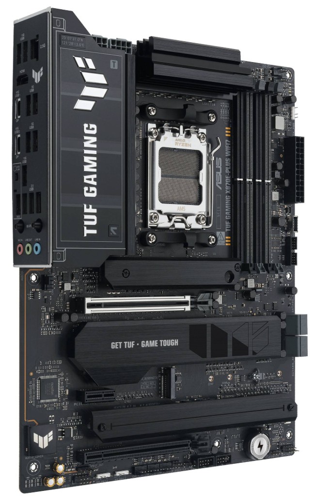 A ASUS TUF GAMING X870E-PLUS WIFI7 reúne em todos os elementos essenciais dos mais recentes processadores AMD Ryzen™ e combina-os com funcionalidades prontas para jogos e durabilidade comprovada. Concebida com componentes de nível militar, uma solução de alimentação melhorada e um sistema de arrefecimento abrangente, esta motherboard vai além das expectativas com um desempenho sólido e estável para maratonas de jogos. As motherboards TUF GAMING também passam por rigorosos testes de resistência para garantir que possam lidar com condições em que outras podem falhar. Esta plataforma fornece a potência e a conectividade que as aplicações avançadas de IA para PC exigem.