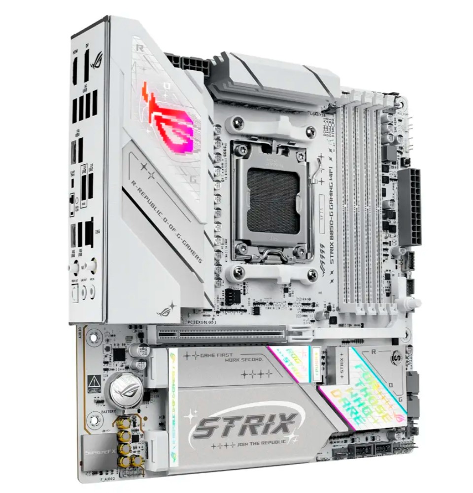 Com IVALiberta o desempenho da próxima geração com a ROG Strix B850-G Gaming WiFi. Construída com um elegante PCB branco e com suporte para processadores AMD Ryzen™ 9000 Series e memória DDR5 de ponta, esta motherboard está equipada para jogos de topo. O PCIe® 5.0, o USB 20Gbps Type-C® e o WiFi 7 garantem uma velocidade e um desempenho inigualáveis.