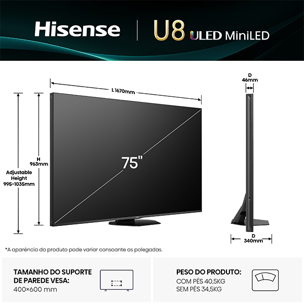 TV 75 polegadas HISENSE Série A6Q Smart TV 4K 75A6Q