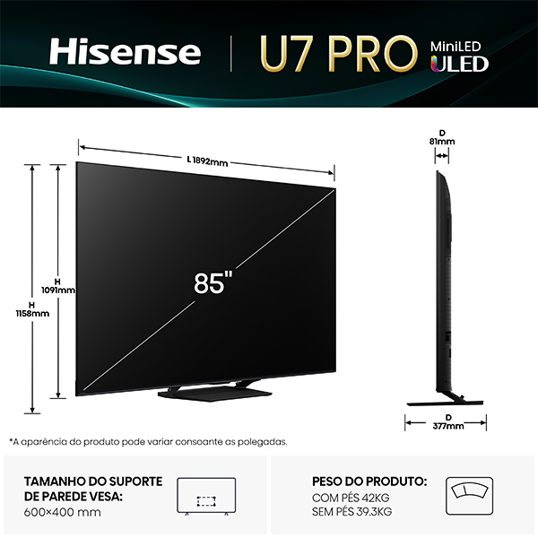 TV QLED Hisense 100 polegadas SMART TV 144HZ
